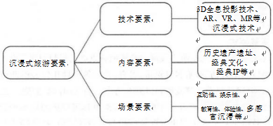 通过对沉浸式旅游内涵的梳理,发现沉浸式旅游的关键要素有三个:技术要素、内容要素和场景要素。技术要素是沉浸式旅游实践与发展的主要影响因素,内容要素是沉浸式旅游的核心,场景要素是沉浸式旅游的吸引力所在。