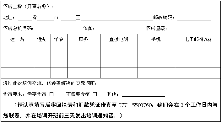 附件一:《酒店经理人的成功销售》培训班报名回执表
