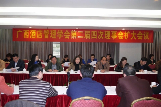 2014年3月19日,广西酒店管理学会第二届四次理事会扩大会议在南宁圣展酒店召开,学会二届理事、联盟成员酒店总经理参加了本次会议。会议就广西联盟营销中心的成立、学会网站的改版、亚太酒店讲坛培训模式的介绍以及联盟设立服务顾问的说明展开了交流讨论。