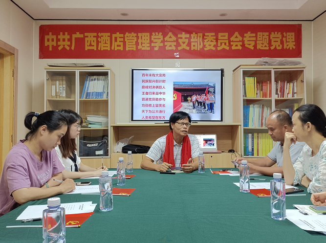 6月30日,中共广西酒店管理学会支部委员会全体党员在教育路党员活动室召开了广西酒店管理学会党支部党史学习教育专题党课活动,由广西社会科学学术团体发展促进会特聘讲师黄启标教授主持讲授。