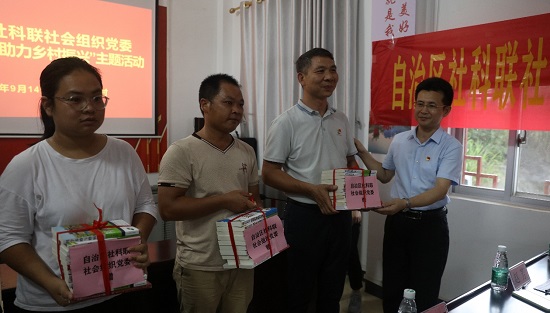 9月14日,“党旗领航·助力乡村振兴”主题活动在南宁市江南区江西镇锦江村举行。自治区社科联党组成员、副主席、社会组织党委书记杨东星出席并致辞。自治区社科联社会组织党员、自治区社科联学会学术部党支部党员、锦江村党员群众代表等参加活动。