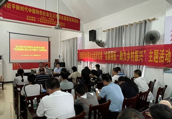 本次主题活动由自治区社科联主办,广西酒店管理学会党支部、广西亚太酒店管理研究院联合党支部、江西镇锦江村党总支部、自治区社科联学会学术部党支部、广西社会科学学术团体发展促进会、广西才智文化艺术研究院、广西城镇化发展研究会等单位承办。