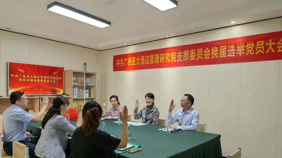 近日,中共广西亚太酒店管理研究院联合支部委员会召开全体党员大会,选举产生新一届党支部领导班子。大会按照《中国共产党章程》和《中国共产党基层组织选举工作条例》规定,精心准备,事前充分发扬党内民主,在广泛征求意见、充分酝酿的基础上,制定了换届选举大会议程和《支部换届选举办法(草案)》,并确定了新一届支部委员候选人名单,为换届选举工作的顺利开展奠定了坚实基础。