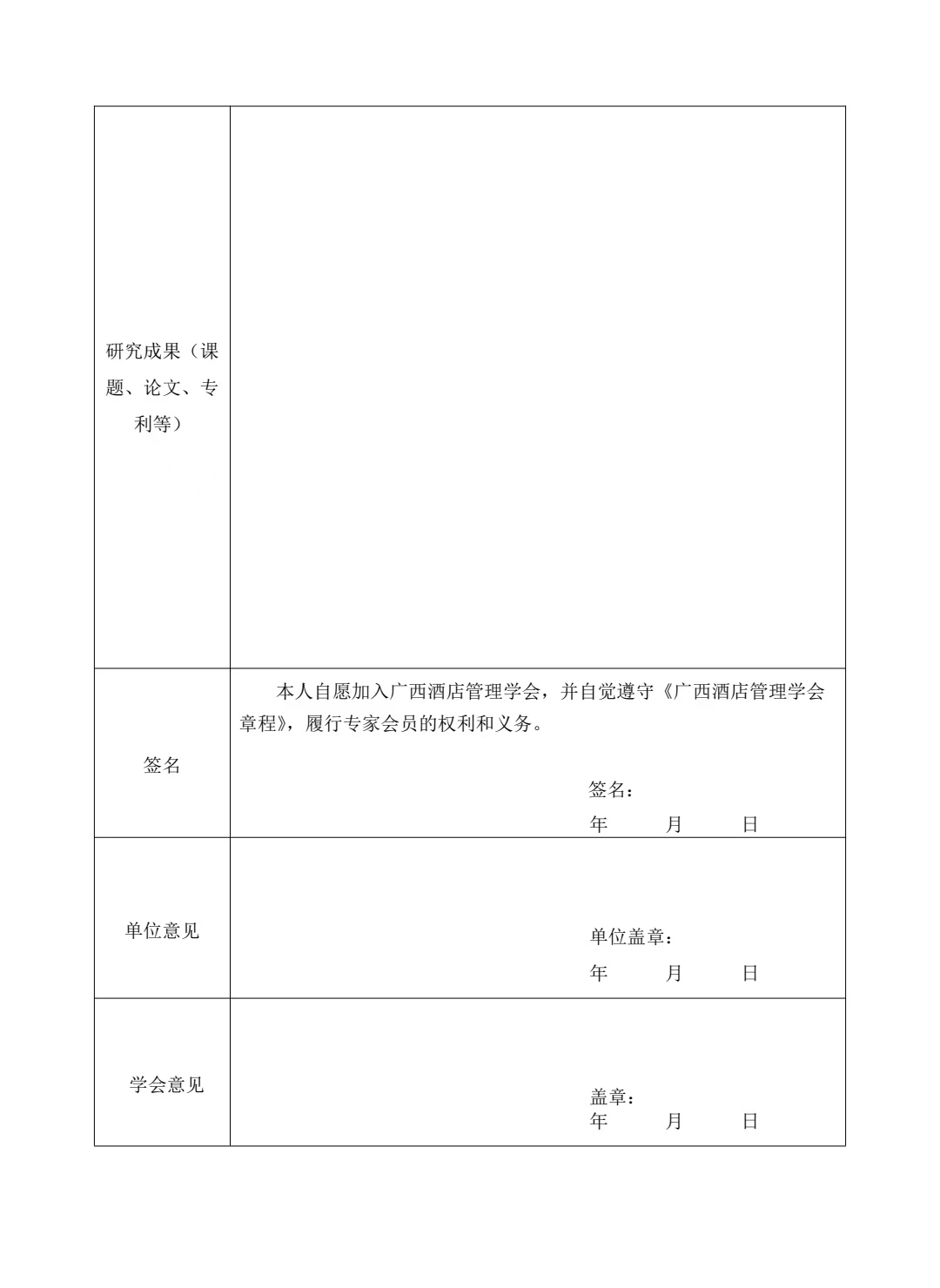 广西酒店管理学会入会申请表(酒店)
