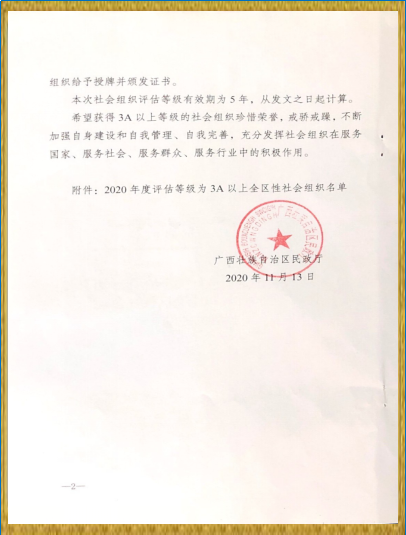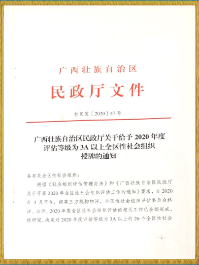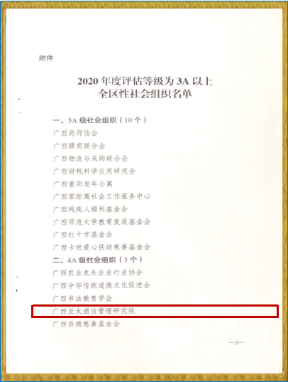 广西亚太酒店管理研究院获自治区民政厅评为4A级社会组织文件