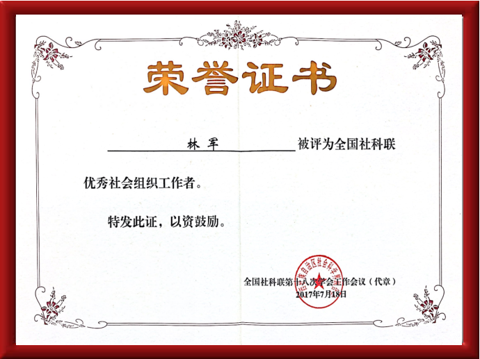 学会会长林军被评为全国社科联优秀社会组织工作者