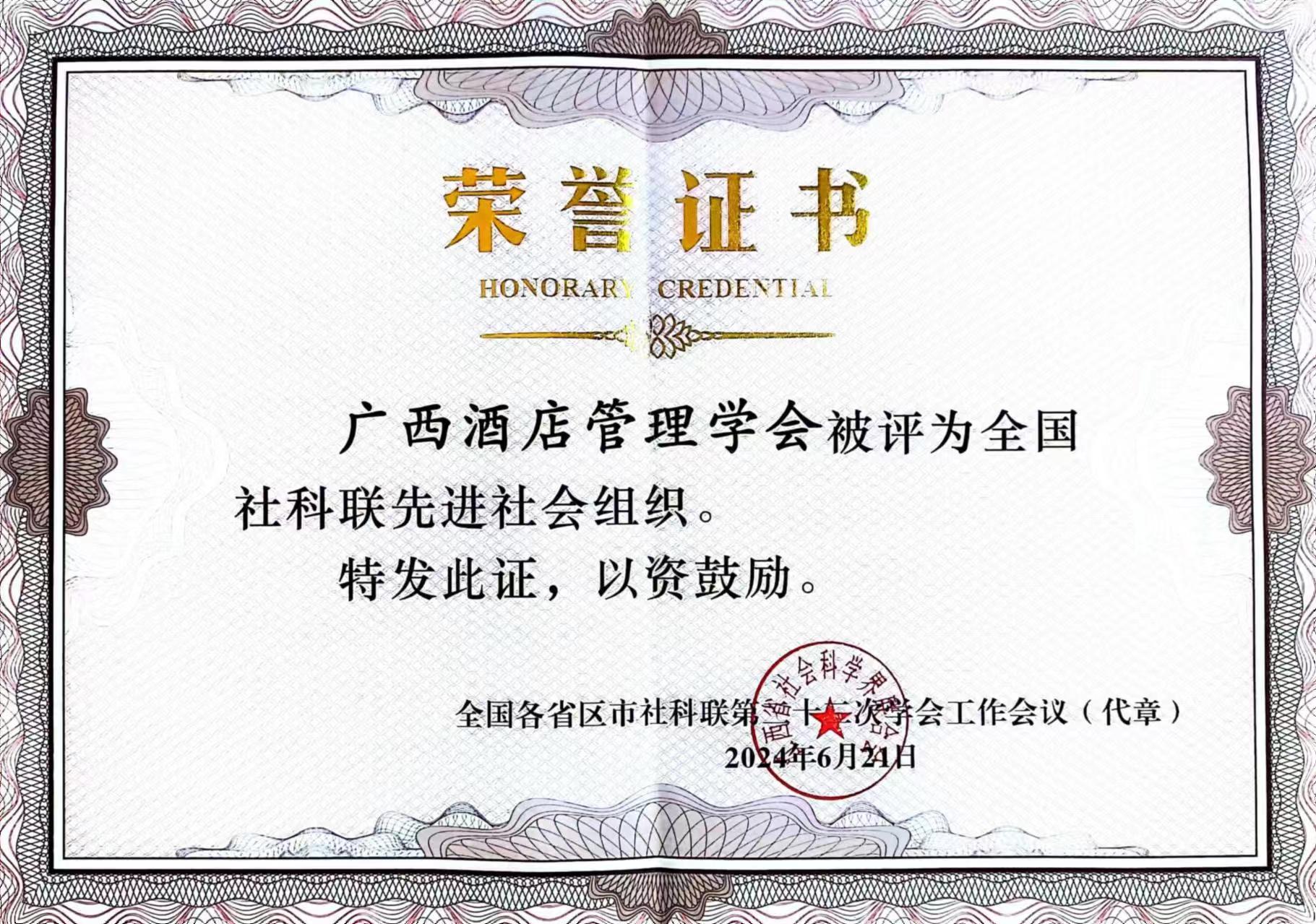 广西酒店管理学会获评“全国社科联先进社会组织”