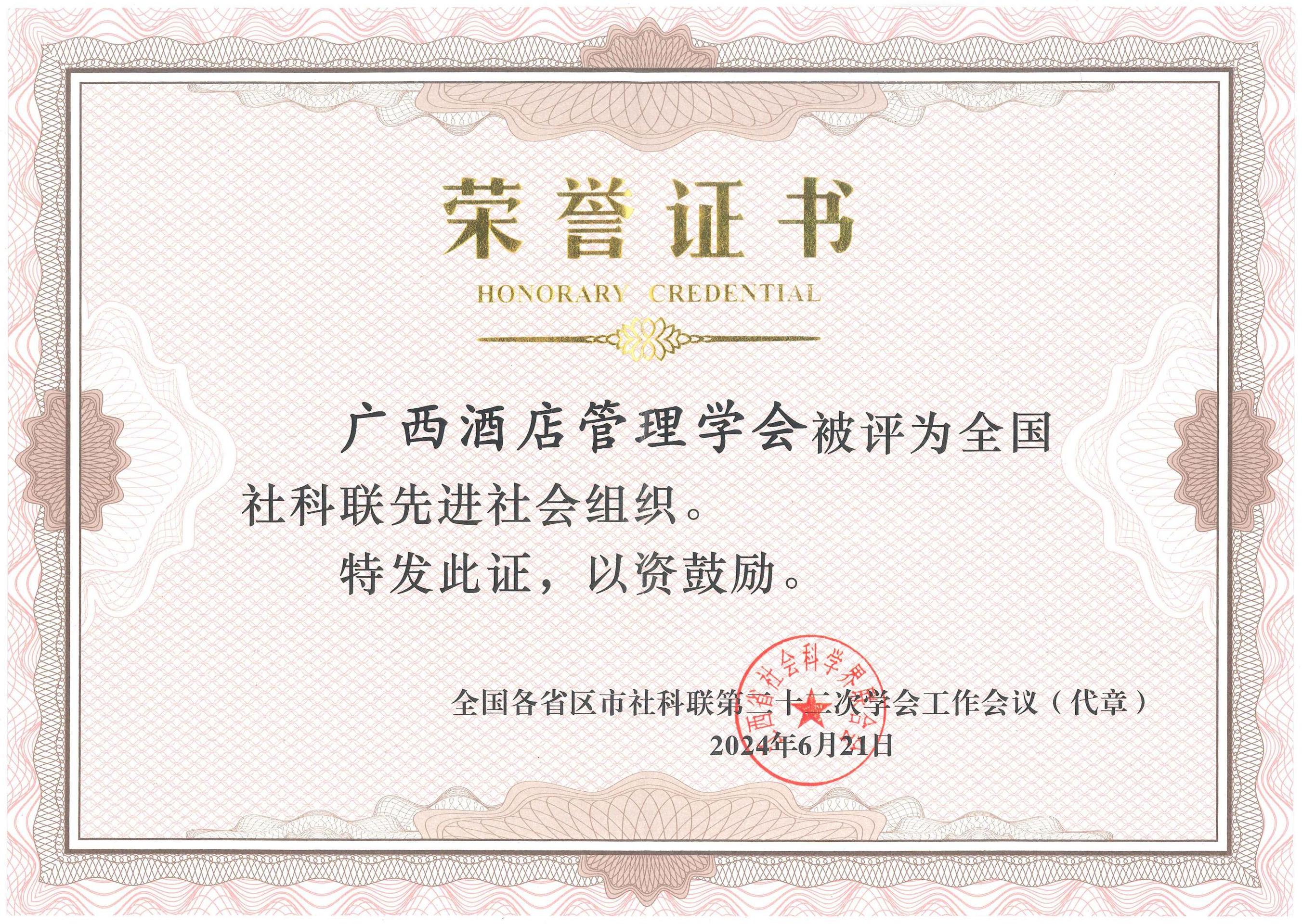 广西酒店管理学会获评“全国社科联先进社会组织”