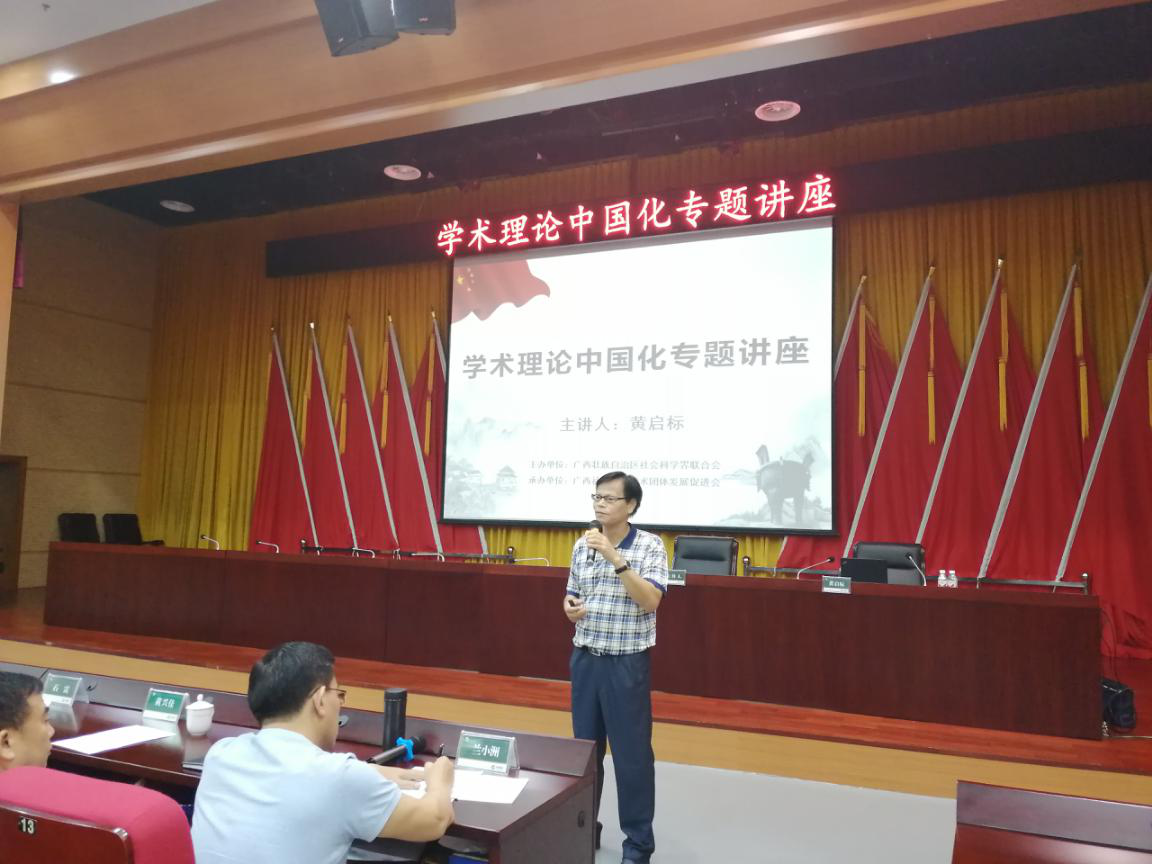 仲夏之日、阳光明媚,一场学术报告正在举行,这是2019年8月7日下午,由广西区社科联主办,广西社会科学学术团体发展促进会经办的《学术理论中国化——有为政府与有效市场》讲座在中共南宁市烟草专卖局(公司)会议室精彩进行,主讲黄启标教授是促进会理事,与会的学员是来自南宁烟草专卖局机关办公室的全体党政干部近70人。