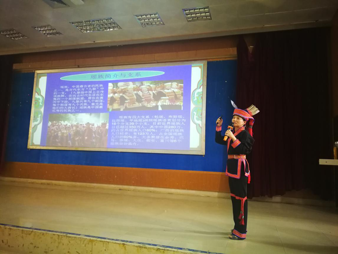 中秋骄阳仍灿烂,光芒耀眼读书忙。9月28下午3点《瑶医瑶药与健康养生》讲座如期在广西职业技术学院开讲,这是由广西社会科学界联合会主办、广西亚太酒店管理研究院承办的《广西地方优长学科》系列讲座之一;主讲是广西亚太研究院的瑶族养生专家和瑶医瑶药传人金珠老师,听课的是来自广西职业技术学院食品与生物技术学院两个年级六个班的250名专科学生和带队老师,齐刷刷坐满了整个阶梯教室。