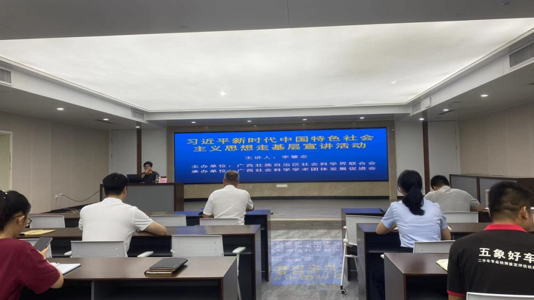 2022年8月23日,由广西壮族自治区社会科学界联合会主办,广西社会科学学术团体发展促进会、广西酒店管理学会承办的习近平新时代中国特色社会主义思想走基层宣讲活动在广西桂物机电集团有限公司举行。本次宣讲特邀中共广西区委党校教授、“西部之光访问学者”李肇忠主讲。